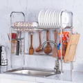 2-Tiers Kitchen Shelf 304 Stainless Steel Seasoning Shelf Multi-Function Spice Storage Rack Hanging Hook Household Organizer
