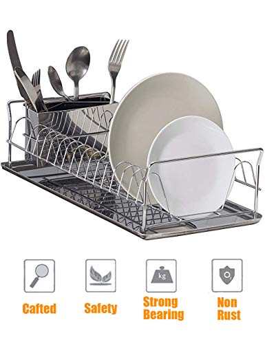 - MULTIFUNCTIONAL DISH RACK - One Tier organizer design, this drying rack can handle kinds of kitchenware and dinnerware such as plates, bowls and cups. Large capacity with utensils drainer box.