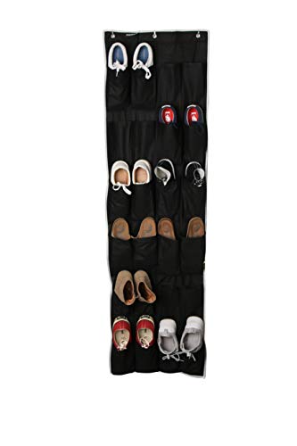 Finished in black, this shoes organizer looks great with many decor and color schemes. This over the door organizer helps to keep your room clutter free. You can conveniently arrange the shoes and keep them in place. There are 24 slots that can hold up to 12 pairs of shoes efficiently. This organizer can be hung on the doors of the closet, bedroom or in the mudroom.