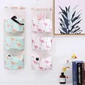3 Pockets Wall Mounted Wardrobe Hang Bag Wall Pouch Cosmetic Toys Organizer Flamingo Pattern Cotton Linen Hanging Storage BagUSD 2.84/piece