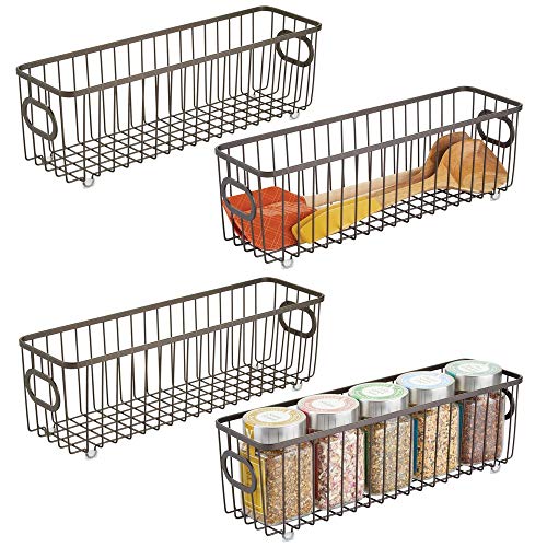 - STORAGE MADE SIMPLE: These large capacity bins are great for creating a clean and organized kitchen cabinet or pantry; Great for storing dry goods, holds canned goods, soups, food packets, seasonings, baking supplies, snack bags, boxed foods, soda pop bottles, sports and energy drinks; Use side by side and combine with other mDesign bins to create the storage solution that works best for you; The slim format is great for storage on narrow shelving and countertops; Set of 4