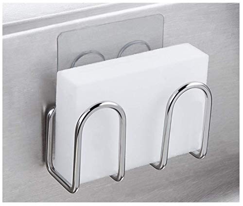After many months of dealing with a sponge holder that was held by suction and constantly falling down I found this product and decided to give it a shot. It was easy to adhere and easy to place the metal holder on the adhesive hooks. It has a simple design but what really sets it apart is that it has an adhesive backing instead of suction cups. The holder feels really sturdy and I am sure it will last . And unlike so many other “rust proof” items I have had that do rust, these do NOT rust. I would recommend this product.